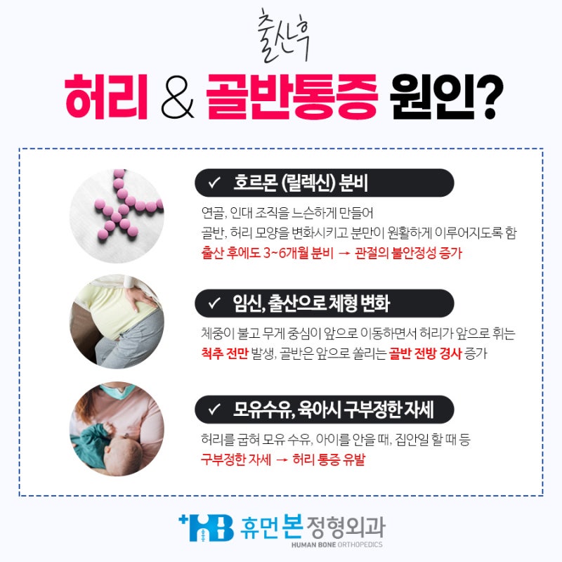 임신 후 출산을 하게 되면 산모는 휴식이 필요하지만 육아와 가사에 과중한 부담을 안고 몸을 지키기가 쉽지 않다. 많은 산모들이 임신을 하고 출산을 하게 되면서 출산 후 골반 통증과 허리 통증을 경험하게 됩니다. 이는 뼈와 인대가 호르몬과 태아에 의해 늘어나서 다시는 돌아오지 못하고 넓어지거나 손상되기 때문입니다. 뿐만 아니라 관절에 무리가 가면서 손목통증, 어깨통증, 무릎통증, 발통증 등 다른 통증이 나타날 수 있어 산후조리와 산후풍을 예방해야 한다.