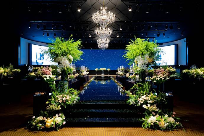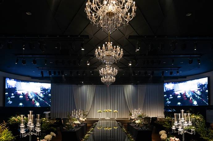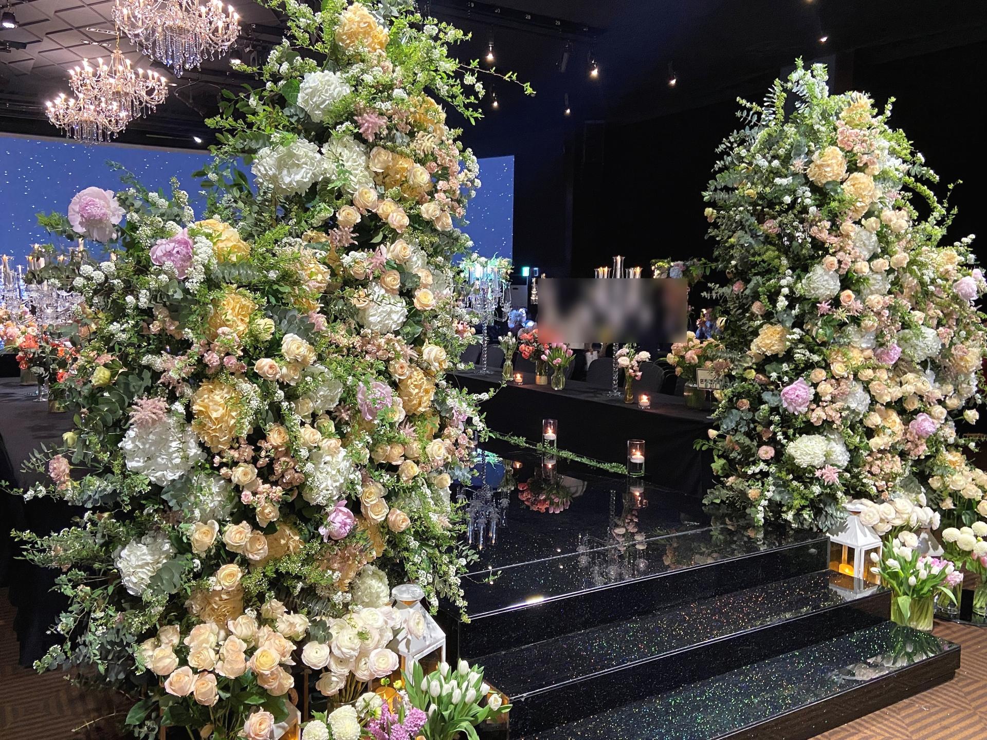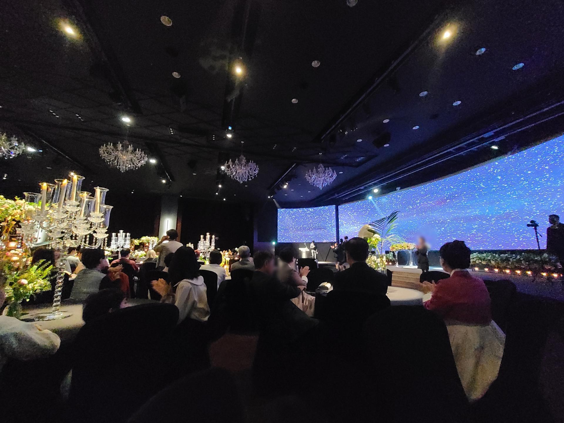 앞에 스크린만 해도 30미터가 넘는다고 하는데… .!!!30미터라고 하는데 30미터라니… 거의 10층에 있는 것 같은 느낌이에요. 이 화면 덕분에 웅장하고 고급스러운 결혼식의 전체적인 분위기가 더욱 고급스러워 보이는 것 같았습니다.