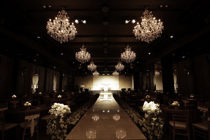 샹들리에 조명이 너무 예쁜 홀이었는데요, 신랑과 신부를 위한 하객석이 따로 있고, 하객석과 웨딩석이 함께 있는 홀도 있었습니다.