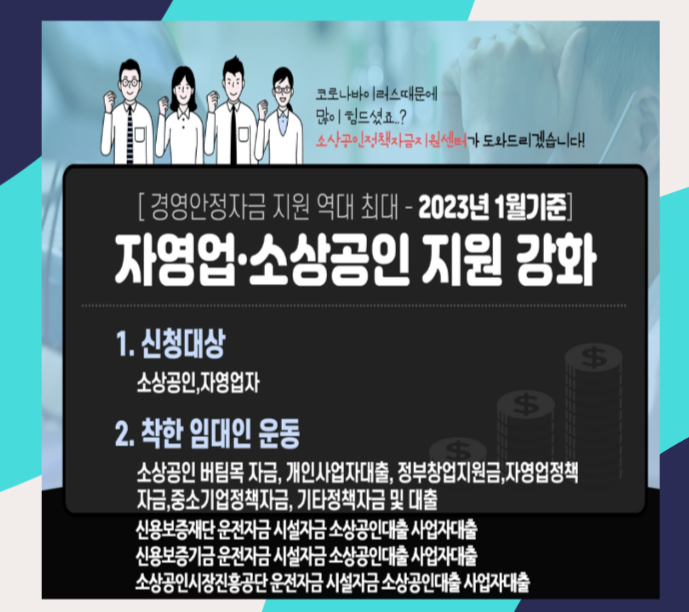 보통 소상공인을 위한 정책자금 대출은 한 곳밖에 없는 것으로 알고 계시리라 생각합니다. 중소기업 판로진흥공사 대출을 비롯해 금융위원회, 신용보름기금, 기획재정부, 지방통신사 등 대상에 따라 조건이 다른 정책이 시행됐다. 많은 분들이 소상공인 정책이라 소상공인 판로진흥공사 대출이라고 생각하실 수도 있는데, 대상에 따라 조건이 다르기 때문에 확인이 필요합니다. 코로나19로 인해 많은 소상공인들이 매출에 피해를 입었고, 자금이 절실히 필요한 분들이 많으니 이는 적절한 정책입니다. 자신의 사업장에 어떤 정책이 적용되는지, 어떤 정책이 유리한지 알아보고 적용하는 것이 중요하다. 정부지원 자영업자금 정책의 대표적인 정책과 주의할 점을 알아보세요. 핵심만 짚어보겠습니다.