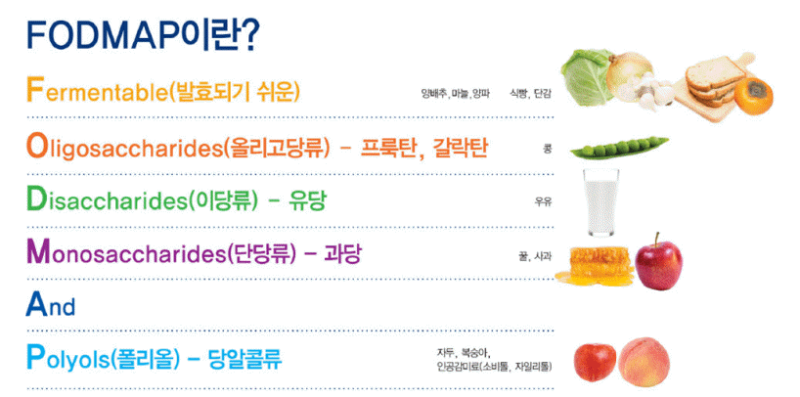 좀 더 자세히 말씀드리겠습니다. 먼저 포드맵(FODMAP)의 성분을 살펴보겠습니다.