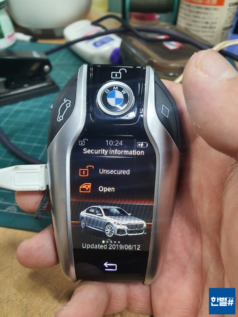 이제 전원버튼을 누르면 화면이 나옵니다. 다행히 BMW 디스플레이 자동차 키 오작동이 성공적으로 수리되었습니다.