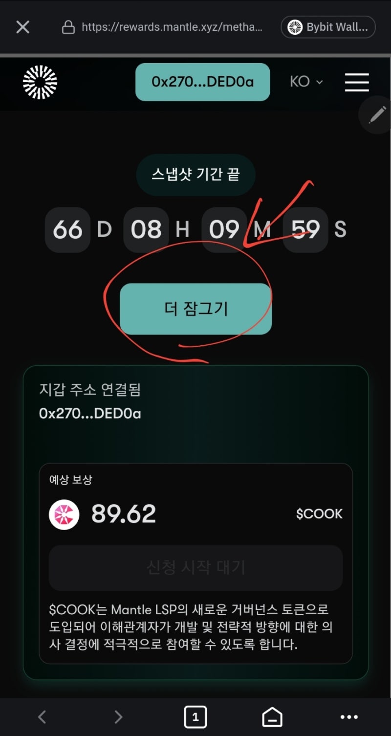 다음날부터 상장이 시작되므로 기존 보유자는 COOK 클레임 수령을 진행해야 합니다. 순서는 의외로 간단합니다. 맨틀 mETH 프로토콜 캠페인 페이지 상단의 텍스트를 클릭하시면 홈페이지로 이동하여 지갑을 연결해 드립니다.